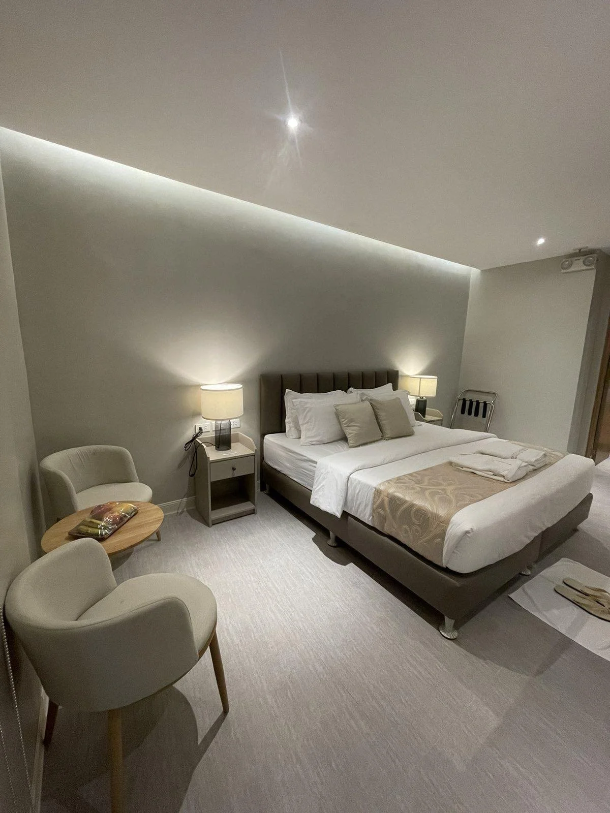 At Mountain Lake Resort, just 16.34 kilometers away, our Superior Room (18.36 sqm) boasts a luxurious king-size bed for a peaceful retreat. This smoke-free, air-conditioned sanctuary features modern amenities like an LCD/LED cable TV, private bathroom with hot and cold shower, plush bath towels, and a hairdryer. Guests also enjoy a mini fridge and complimentary water, perfect for a revitalizing staycation.